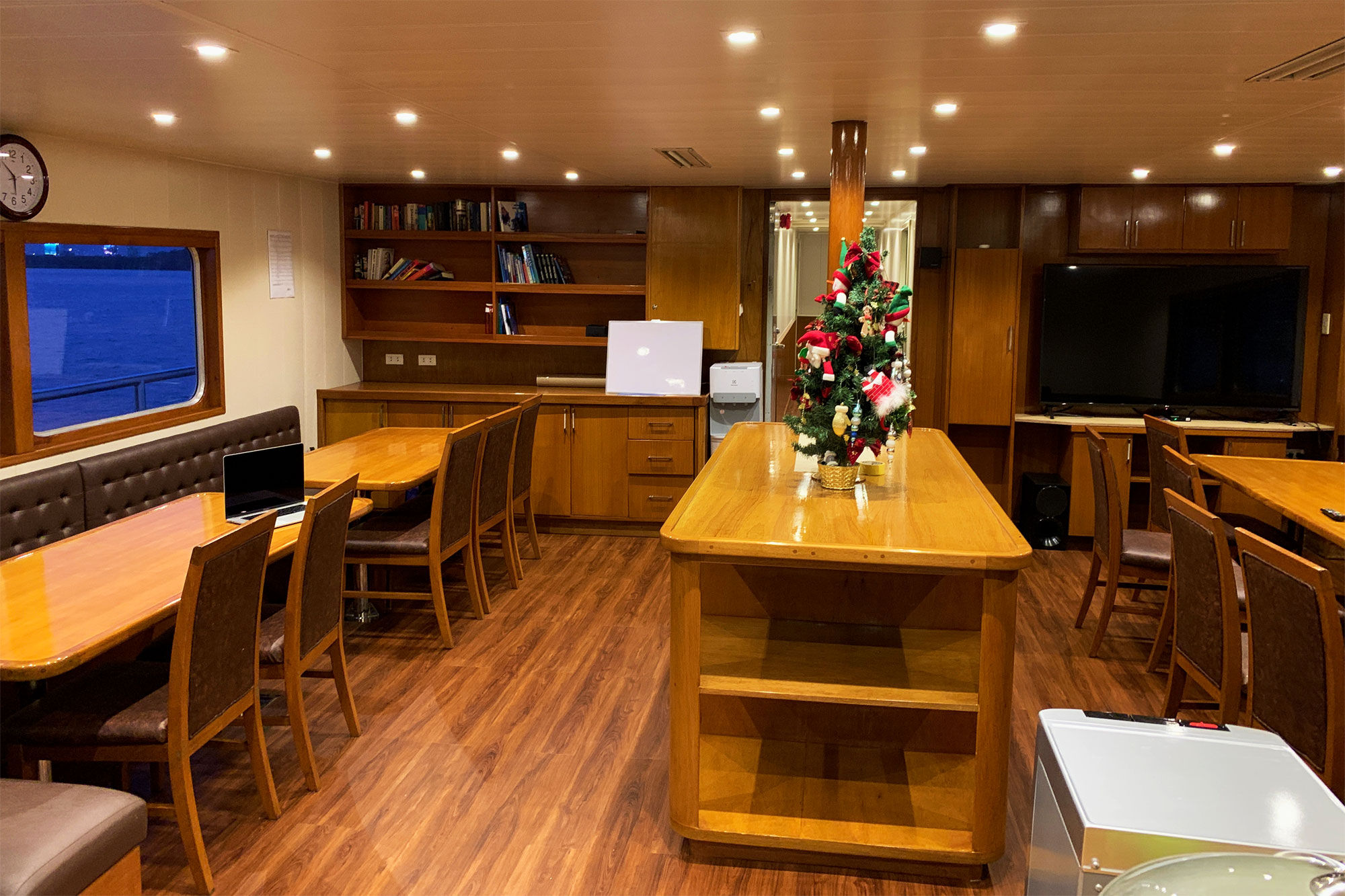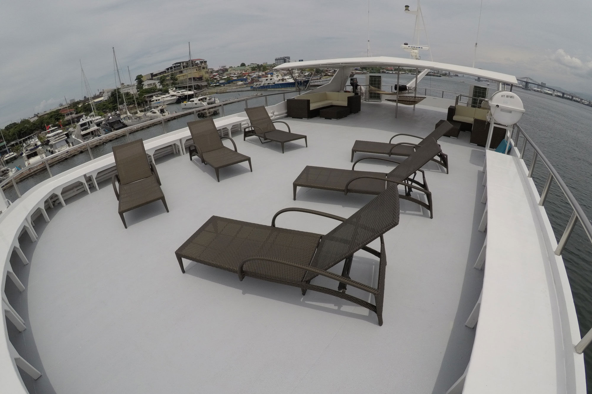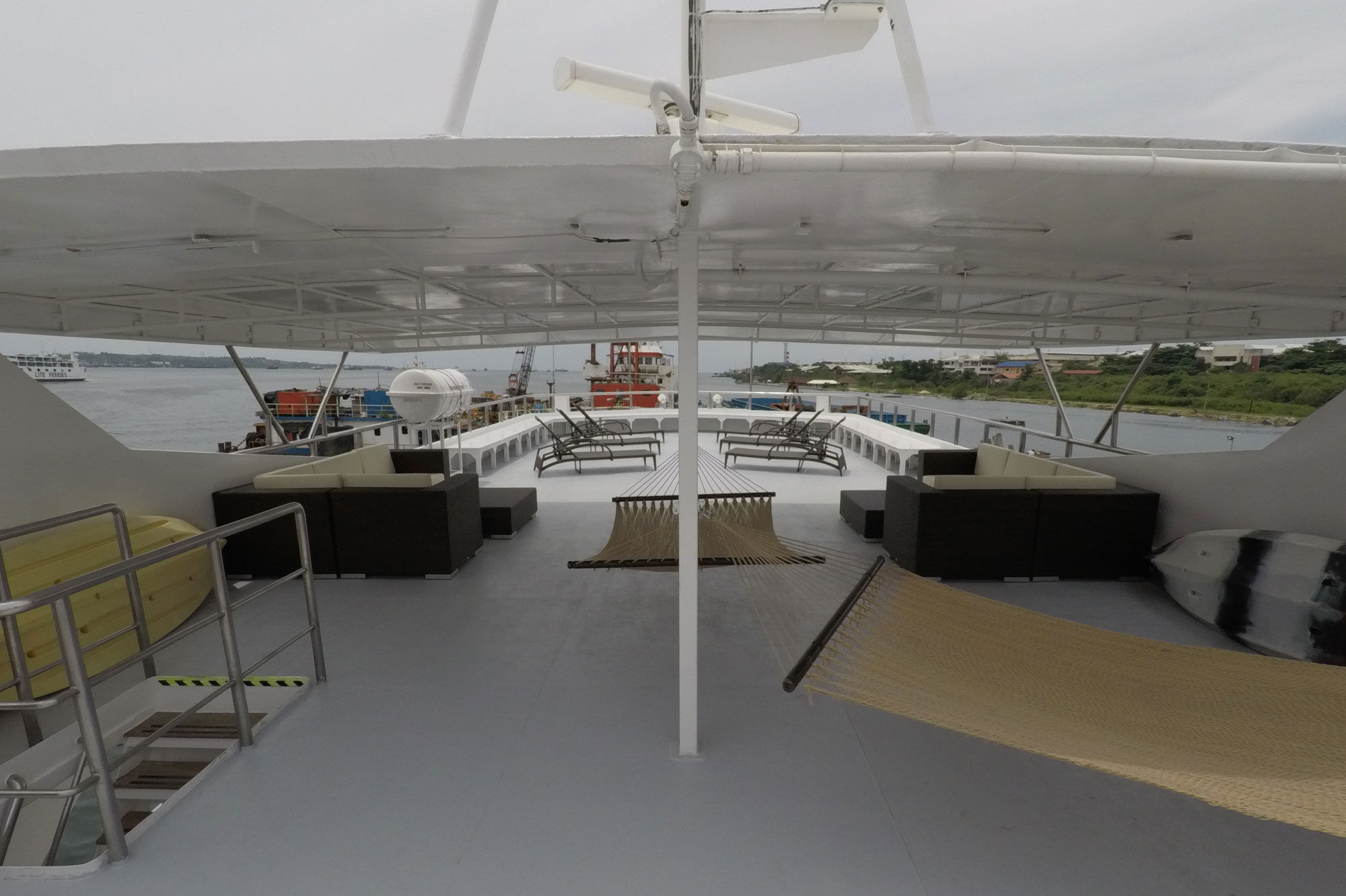 The Infiniti is a 39m liveaboard built for diving into the fantastic dive sites of the Philippines year-round. The Infiniti yacht offers 11 newly renovated rooms with an emphasis on comfort. Each room has an en-suite bathroom with a shower, large picture window, or porthole. Guests can relax in the spacious indoor lounge, the outdoor lounge, and the massive sundeck with cushioned loungers and hammocks. It is the perfect place for relaxation, sunbathing, yoga, evening BBQs, or stargazing. Freshly prepared meals and snacks are served in the indoor dining area.