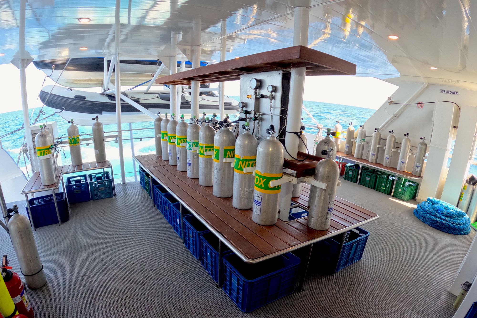 Infiniti has a knowledgeable, passionate, and dedicated crew providing superior onboard service. Infiniti has state-of-the-art diving amenities, including Bauer compressors, top-of-the-line equipment, a large dive deck, camera tables, rinse tanks, and charging stations. MV Infiniti allows for a limited number of divers to provide personal attention, creating once-in-a-lifetime diving excursions. The new camera room with charging stations, counter space, shelves, and drawers caters to all photography requirements so you can capture the amazing underwater world of the Philippines. Itineraries visit Malapascua to dive with Thresher sharks, Visayas & Bohol to spot whale sharks, and Tubbataha National Park for reef diving.