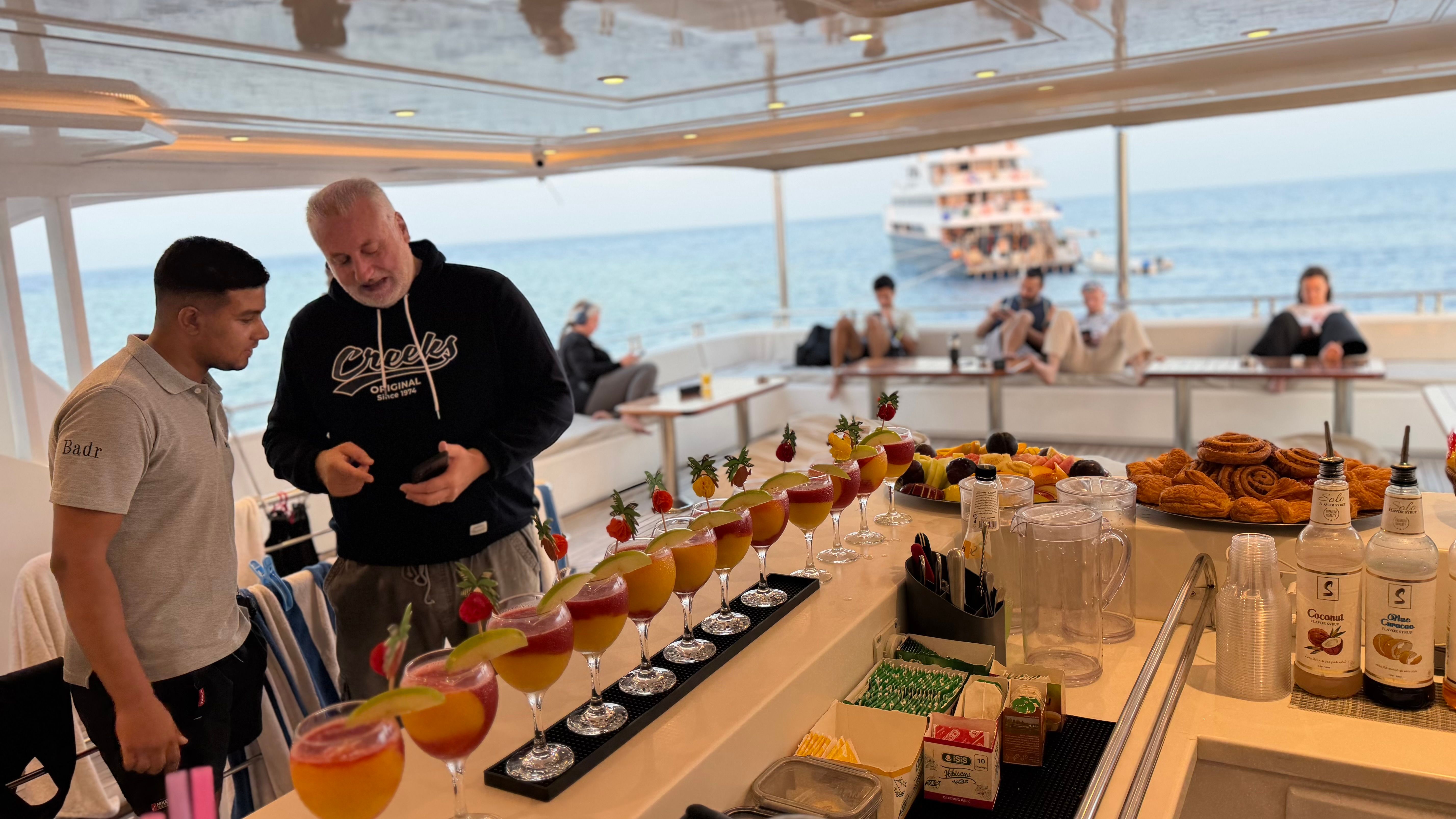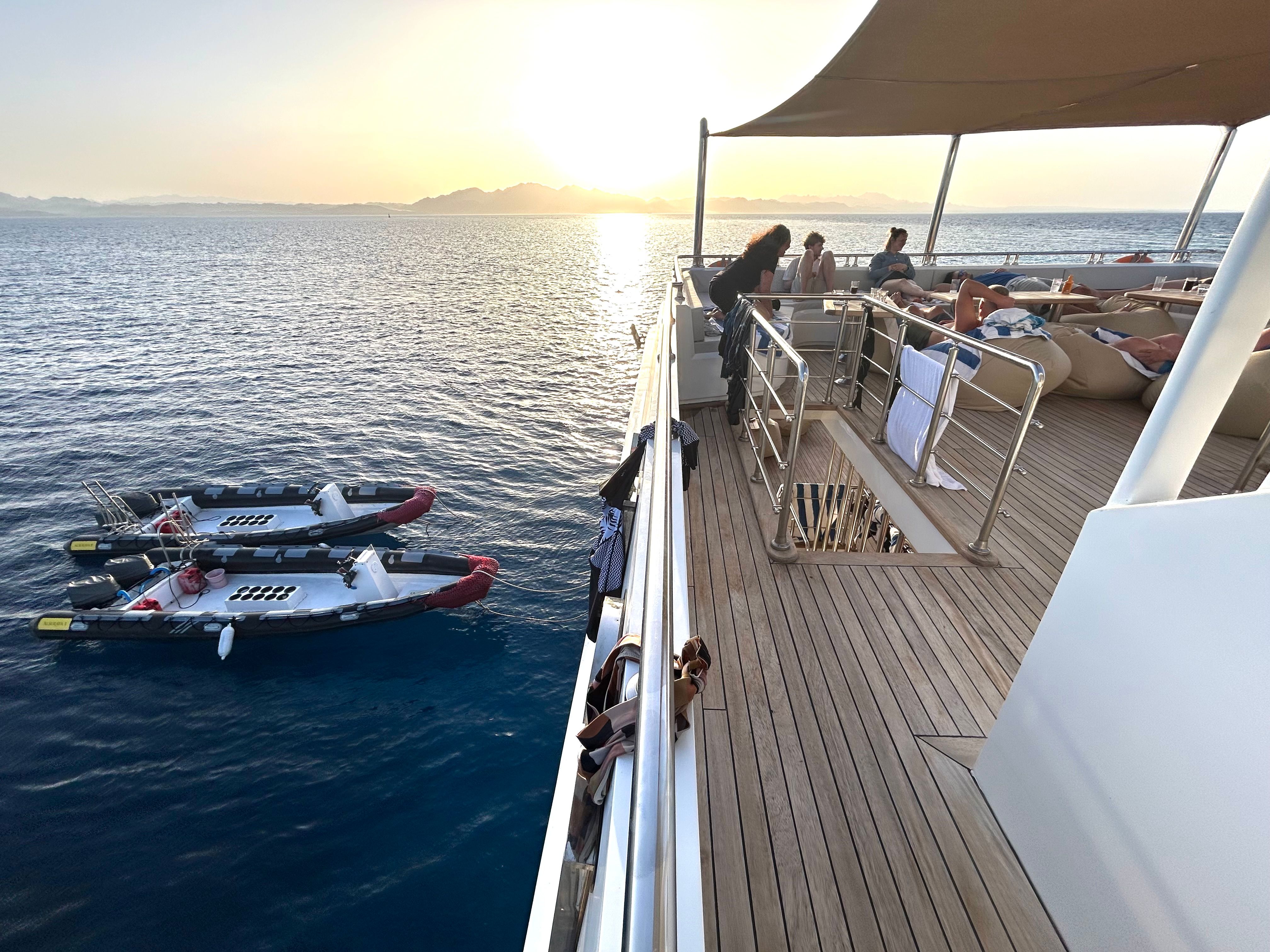 在Alsuraya上,客人可以在休息室放松,在阳光甲板的躺椅上享受阳光,或在上层甲板的酒吧享用鸡尾酒,同时欣赏全景风光。船上的餐厅全天供应多种美味的新鲜餐点。此外,还有专职的酒店经理全面负责客人满意度;晚上,他和团队提供菜单点餐服务,并全天提供各种无酒精鸡尾酒。